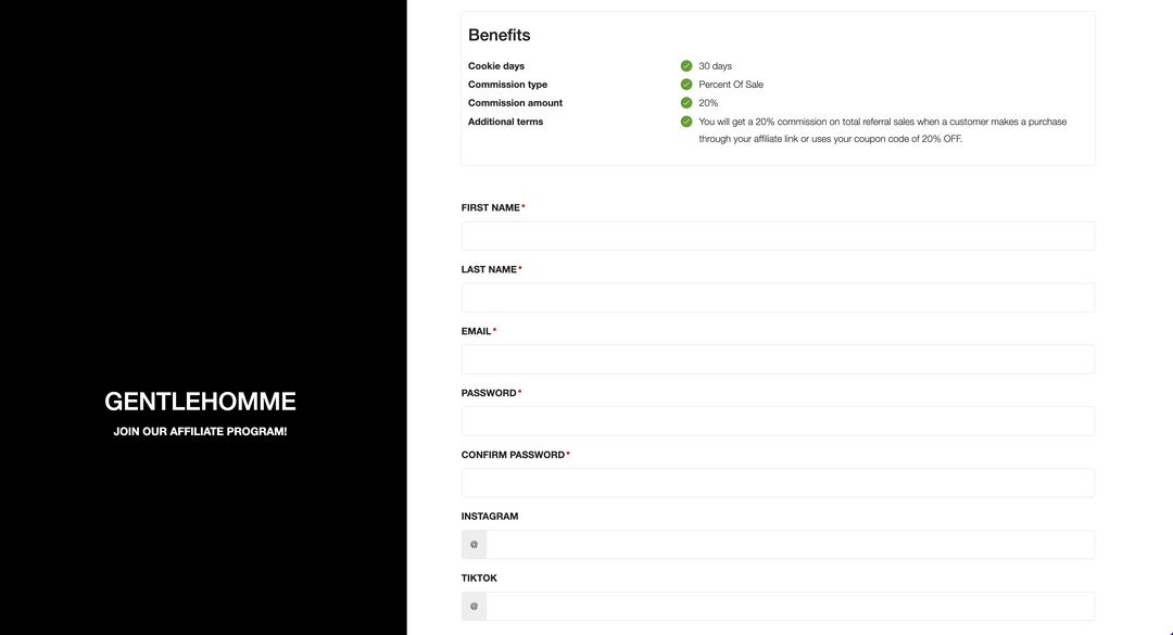 Sign up and receive commission on total referral sales when a customer makes a purchase through your affiliate link or uses your coupon code.